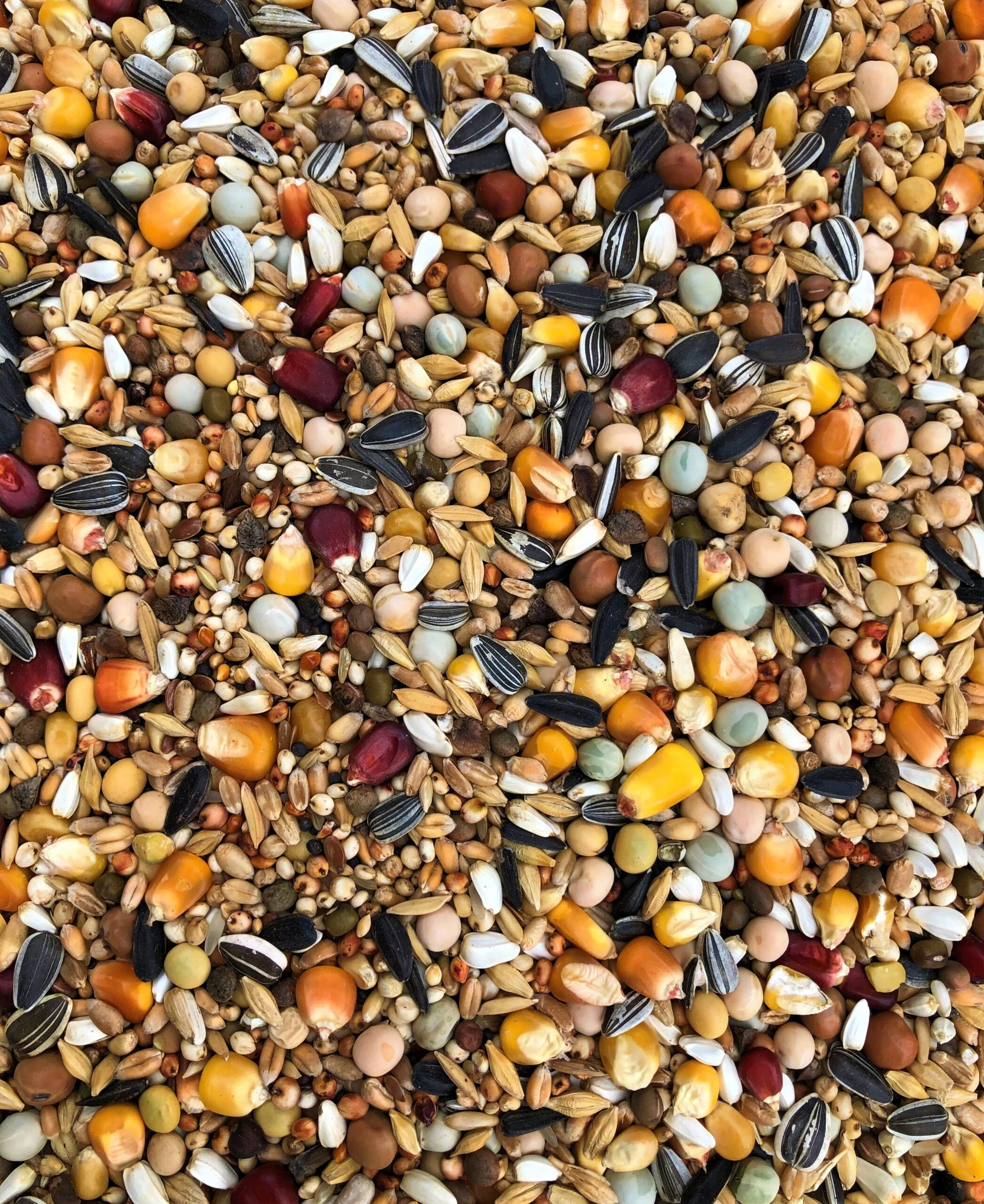 | Composition | Ingredients: Corn, Wheat, White Sorghum, Barley, Yellow Peas, Safflower, Red Sorghum, Vetches, Green Peas, Rapeseed, Maple Peas, Soya Seed, Red Corn, Striped Sunflower, Black Sunflower, Yellow Millet, Linseed, Canary Seed, Peeled Oats, Paddy Rice, Rice, Mung Beans, Buckwheat, Red Millet. |